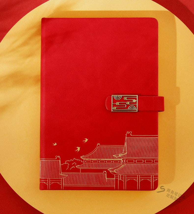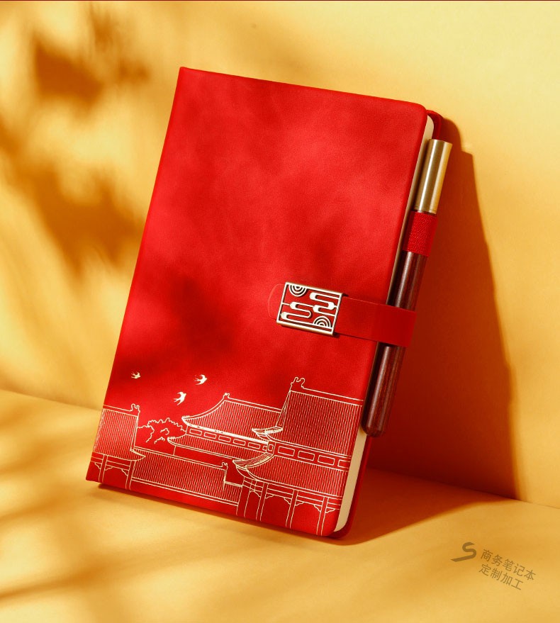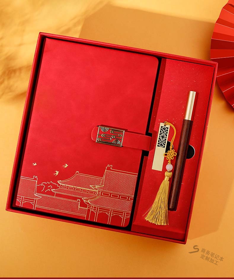 中國紅仿古搭扣筆記本套裝禮盒設計印刷案例