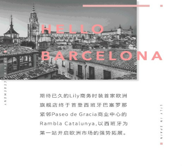 期待已久的Lily商務時裝首家歐洲旗艦店在西班牙巴塞羅那開張。