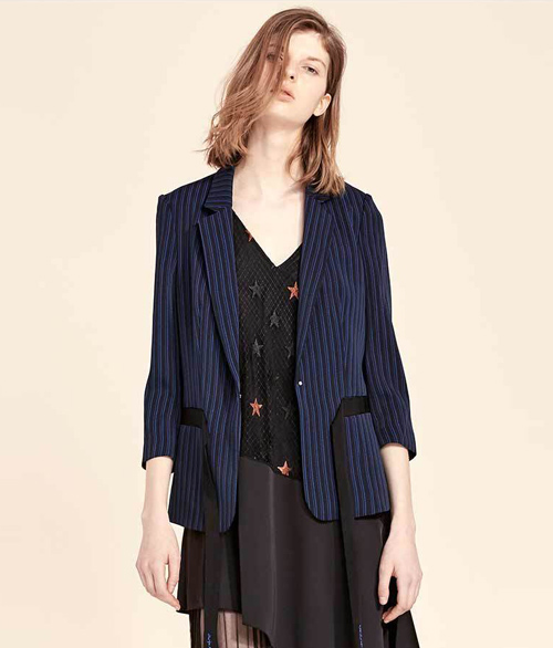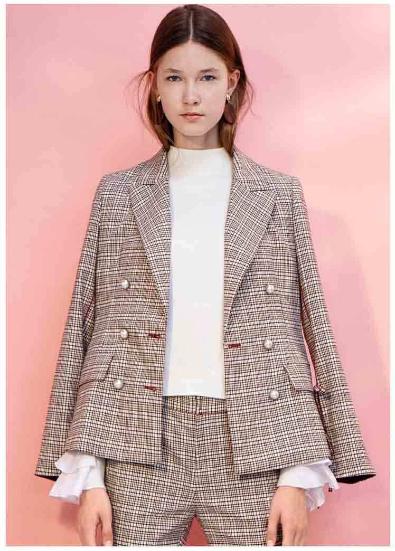 西裝纖細(xì)的豎條紋低調(diào)不張揚(yáng),散發(fā)柔和的質(zhì)感,利落七分袖設(shè)計(jì)自帶氣場(chǎng),塑造干練的職場(chǎng)女性范兒