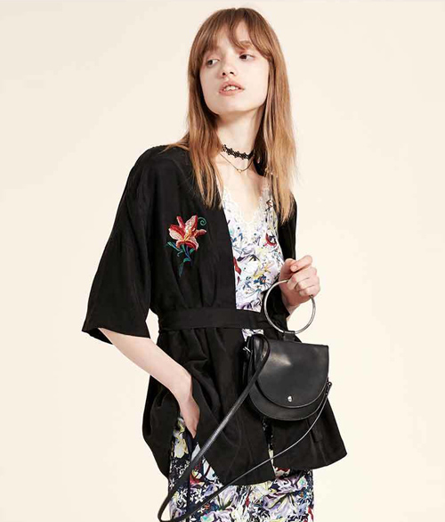 外套用大面積黑色作鋪墊繡花來點(diǎn)綴,十分獨(dú)特有型,搭配系腰帶的設(shè)計(jì),風(fēng)情萬種,不管是出游還是通勤都適合穿著