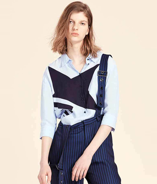 襯衫個(gè)性的五角星印花,在一剎那就能抓住你的眼球,時(shí)尚而又不夸張,搭配粘纖的面料,夏日穿著舒適有型