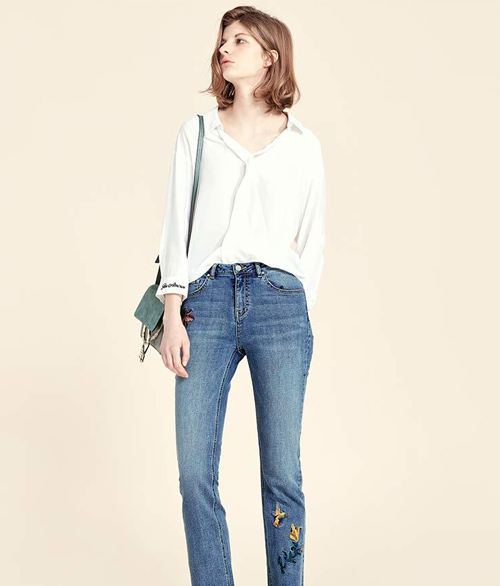 褲子修身版型搭配磨白破洞設(shè)計(jì),內(nèi)斂又不羈,腳口不對(duì)稱及毛邊處理,更顯休閑時(shí)髦,隨意搭配哪種上衣都變身時(shí)尚ICON