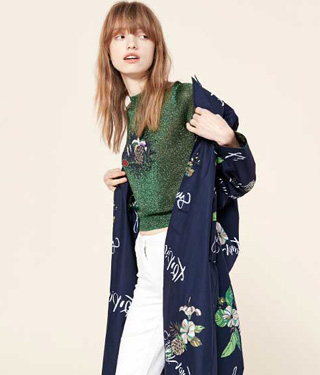 風(fēng)衣H型輪廓的外套近期十分火熱,不僅非常有氣場(chǎng)而且有技巧的修飾了身材。大面積印花圖案的設(shè)計(jì),更顯時(shí)髦優(yōu)雅